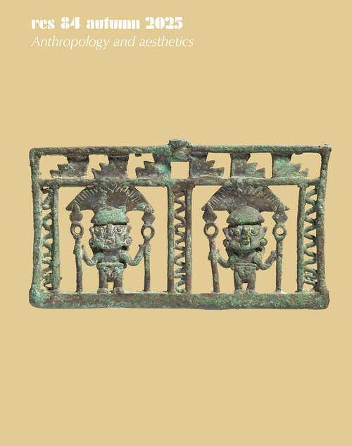 This is volume 84 issue 1 of Res: Anthropology and Aesthetics. RES is a journal of anthropology and comparative aesthetics dedicated to the study of the object, in particular cult and belief objects and objects of art. The journal brings… together, in an anthropological perspective, contributions by art historians, archaeologists, philosophers, critics, architects, artists, and others. Its field of inquiry is open to all cultures, regions, and historical periods. In addition, RES seeks to make available textual and iconographic documents of importance for the history and theory of the arts.