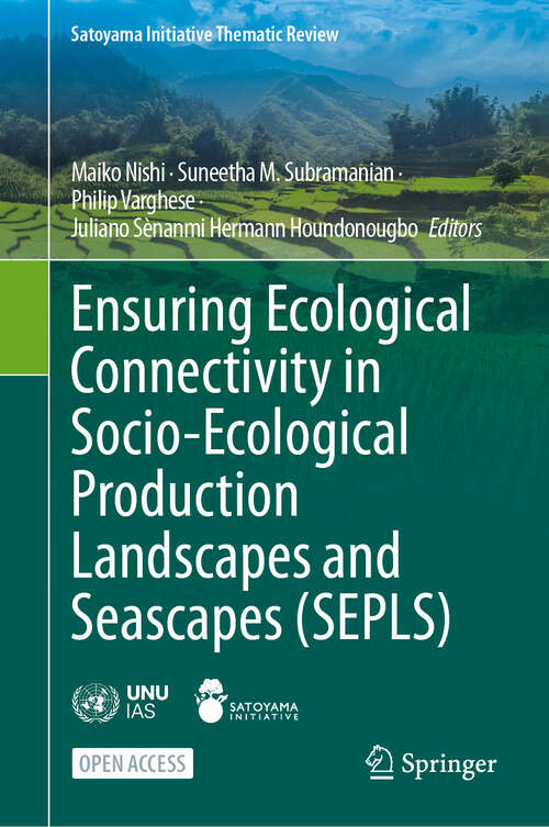 This open access book sheds new light on the critical role of socio-ecological production landscapes and seascapes (SEPLS) in ensuring and enhancing ecological connectivity. Through a compilation of diverse case studies, it presents how integrated landscape and seascape management can… support biodiversity conservation, climate change mitigation and adaptation, and sustainable development. The chapters cover topics such as sustainable agricultural practices, forest protection, community involvement, and the preservation of traditional knowledge. It also includes the empowerment of communities to govern their natural resources, as seen in the Asunafo-Asutifi landscape of Ghana, and the integration of traditional wisdom with modern ecological practices in Nan&’an. The book also investigates the potential of community forests in Thailand and the management of biocultural heritage territories in Kenya to enhance ecological connectivity. Readers will discover how these approaches contribute to the conservation of biodiversity and the sustainable management of natural resources. Expert contributors delve into the challenges and opportunities of maintaining ecological connectivity in various regions, from Ghana's cocoa landscapes to Colombia&’s tropical dry enclave. Readers will explore innovative approaches to balancing livelihoods with environmental sustainability, highlighting the importance of local and regional perspectives. This volume is essential for researchers, policymakers, and practitioners in fields such as landscape ecology, environmental governance, and sustainable development. It provides valuable insights into effective strategies for operationalizing ecological connectivity in spatial planning and management. By showcasing practical examples from around the world, this book serves as a vital resource for anyone committed to fostering resilient social-ecological systems and thriving communities.